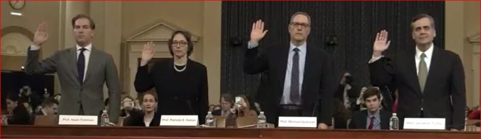 Professor Jonathan Turley, although a Democrat who voted for Hillary Clinton, was chosen by the Republican members of the committee to present his views on the pending impeachment. His presentation was notable in its humility and apparent objectivity. The 53 page presentation can be downloaded HERE. (Opens in PDF file.)