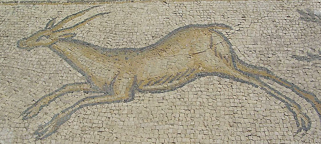 image of Byzantine-era mosaic of gazelle in Caesarea, Israel