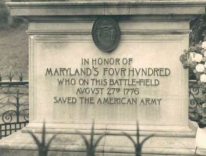 The Maryland First Battalion consisted of 728 soldiers in 1776. They were among the best trained and armed. In those days, riflemen relied on bayonets for fast and close combat. Most of the Continental Army had no bayonets. The Maryland Battalion had bayonets and had drilled in their use. During the Battle of Brooklyn the Battalion sustained heavy causalities. By the time Washington ordered the retreat, the Battalion had dwindled to around 400 soldiers. That is the number that has been reported in histories of the battle and eventually accepted as a convenient round number to romantically compare to the three hundred Spartans who battled the invading Persian Army at the Battle of Thermopylae.